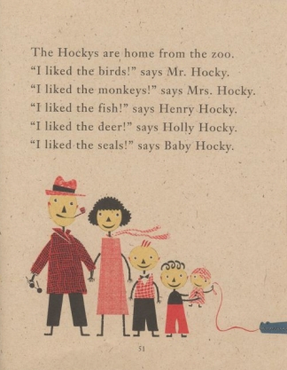 You see, it's possible for an adult to enjoy a very, very simple book. But I don't want all books to be that simple. A great book for those with very, very young kids may in fact be the endpoint of this literary evolution. Now, I came to Lane Smith's 'The Happy Hockey Family' when the boys were very small. We'd bought and greatly enjoyed Jon Scieszka's 'The Stinky Cheese Man', and loved both the narrative and the illustrations. It took me about two seconds in the bookstore to decide that 'The Happy Hockey Family' was well worth the purchase. Let's call it a collection of short stories. I'm going to run a couple of pages here -- one whole short story -- to sell you this book.