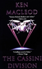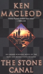 On the other side of the spectrum is Ken Macleod, also Scottish, socialist and a science fiction writer. Other than that, no similarity. Well, the name, but -- Ken Macleod has been on my radar since the US release of 'The Stone Canal'. The 'Fall Revolution' sequence of novels should be read in the proper order if you're going to have a hope of understanding what's going on, so here you go: 'The Star Fraction' is first, with the birth of world chaos and an online AI, followed by 'The Stone Canal', 'The Cassini Division' and finishing up with an elegiac 'The Sky Road'. Ken Macleod writes books that are so packed with ideas, reading one is like picking up a handful of needles. He'll start in the recent past, with bullshitting socialist wannabes hanging about and philosophizing while getting hornswoggled. Before you know it, they're building working versions of the traditional flying saucers ("gravity skiffs") and popping off to live in harmony on an alien earth with Bigfoot ("gigants") and Grey Aliens ("saurs").