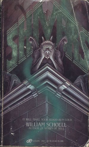 Part of the charm of Schoell's output is the perfection of Leisure's execution in providing graphics, fonts and packaging that seem to have sprung directly from the brain of William Castle. The pouting statue of 'Shivers', and particularly the painted iguana of 'The Dragon' seem to be an apex of good bad taste. It probably helps to dig these books out of moldering piles in a suburban book store, as I did. I found three of my six at Book Exchange in Victorville, California. In the middle of the high desert, under the remorseless glare of the Socal sun, someone paved a seven-mile monstrosity and called it Bear Valley Road. They lined it with strip malls, and in the second strip mall from the I-15 freeway sits a tiny store crammed with semi-old , starting to mold paperbacks. Fortunately, they have a pretty extensive selection of horror novels, many from the boom times when authors actually admitted that they wrote horror. You know the good smell of a new book? These don't smell like that. The spines are so lined you could write a letter on them.