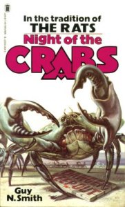 Since this is a World Cheese Roundup, I'd be remiss not to mention the numerous UK authors who have blazed the path of bad taste leavened by occasional good to great writing. I'll confess that I could never actually bring myself to buy Guy N. Smith, Peter Tremayne or Shaun Hutson novels. (I did see the movie version of 'Slugs' however, which might have helped to cure me of any desire to read Hutson's books.) Like many, I have fond memories of seeing scads of 'Crabs' novels scattered in the bookracks of the Monterey Park bookstore I used to haunt during lunch hours when I worked at the blood factory. I found them rather disturbing, dirty, almost pornographic, and not in a way I could easily deal with. So I passed them by. One of my correspondents admits to having "about 38" of these wonders. The horror, the horror.