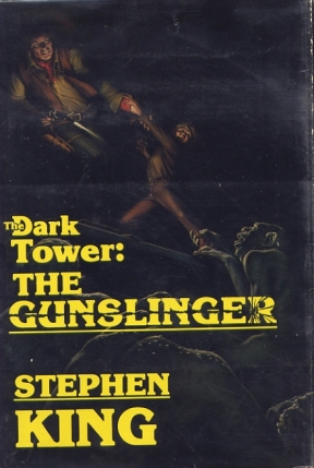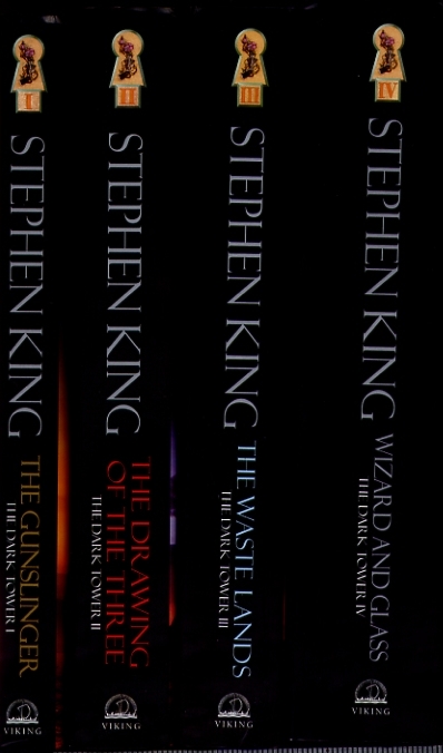 Meanwhile, back in the Seat of BUSP Evil, here's what happened. Apparently, someone at Penguin Putnam put one of those infamous seed pods right next some of those Donald Grant books and the result may be faux but it's undeniably beautiful. Well, actually what happened is rather unprecedented -- Viking,Scribner and small-press publisher Donald M. Grant have combined forces to launch the end of the Dark Tower series. On June 23, 2003, you can pack it down to your local bookstore and pick the first four novels in Stephen King's 'The Dark Tower' series in beautiful hardcover editions with very nice and only lightly blasphemous CGI cover art (a la George Lucas' retro-digitized versions of 'Star Wars'). The paper is not quite as heavy duty as that first Donald Grant books, but it's still heavier than usual. The books come with all the illustrations intact, they're nicely uniform with numbered spines, they have the same cover inlays as the originals and they all sport identical new introductions wherein Stephen King talks about being nineteen and liking hobbits.