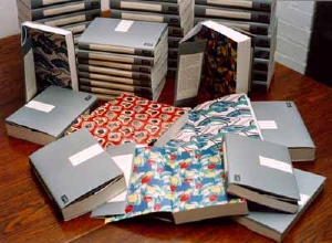 fabric-design end papers, bright, varied, and with a matching bookmark,
