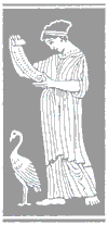 based on a painting on a Greek amphora, shows a woman who is not only reading