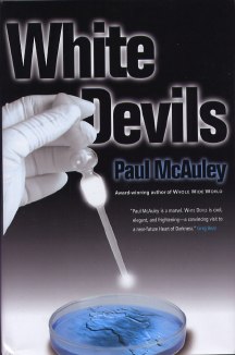 I must say, however, that McAuley does seem to be moving more towards subjects that will open his work up to a wider audience. His earlier works trend towards the more baroque and surreal, while his last two would not have been out of place on the US bestseller lists. Or they would have been out of place only in that they contain both high quality prose and intelligent speculation in addition to a gripping plot. So it's no surprise to find me enthused by his latest novel, 'White Devils', just out from Tor. The premise is one-hundred percent guaranteed to get my attention. Set thirty years in the future, 'White Devils' begins as Nicholas Hyde is investigating a massacre in the Congo when he and his party are attacked by a band of fierce, apelike creatures. That is guaranteed, on-screen monsters, and readers should know that I generally need a drool-cup in the presence of such. Ape-like monsters have a great history in speculative fiction and in Fortean research. I have about 5 megabytes of text files on Bigfoot sightings alone. You can't forget Loren Coleman's true-life Bigfoot adventure story 'Tom Slick and the Search for the Yeti'. While most people want to have their sasquatches be benevolent leaf-eaters, there are some wonderfully terrifying portrayals of them as something rather more dangerous. But let's not go in that direction. Otherwise, I'll be forced to bring out Loren Coleman's lecture on the Sex Life of Bigfoot. In weird fiction, my favorite ape-like monsters are found in H. P. Lovecraft stories. My favorite is 'The Lurking Fear', which, I'll wager, has more than a little influence on this McAuley title. But while McAuley always writes a toe-tapping tale of terror, his finest work comes in his characters and his speculations. Mariella Anders, of 'The Secret of Life' was not an easy character to like, which made her all the more compelling as a center for the events which unfold in the course of the novel. One hopes that his predictive ability doesn't prove as well-tuned as it was for 'Whole Wide World', which offered up a thriller that was eerily prescient of the events of September 11 and the response to those events, both equally frightening. Predictive accuracy is definitely not the job of science fiction. But science fiction that's scary always seems predictive. |