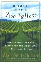 Not all writers are tortured artistes, toiling in gray lofts, tearing out their hair as they struggle with life-and-death issues that sear their souls. Some writers make a point of documenting the opposite experience. Peter Mayle spent 'A Year in Provence' after chucking his dull British lifestyle and moving to the wine country of France. Reality crashed in and perhaps put a few clouds in his heavenly skies, but the life he lived was no less idyllic. Frances Mayes spent her vacation 'Under the Tuscan Sun: At Home in Italy'. Her book reads like the lovely prose version of an advertisement for a vacation in Mediterranean boot. Alan Deutschman, having made some big-money Silicon Valley friends while writing about 'The Second Coming of Steve Jobs' decided to try the same tack on the left coast of the United States in the wine country of Napa and Sonoma Counties. 'A Tale of Two Valleys' goes easy on the idyll and instead finds the author living the good life of a pampered political activist. Sure, there are the great parties and wonderful wines, the charming local characters and the lovely landscapes, but woven throughout the beauty there's a complex web of conflict between the old money, new money, new new money, some money and no money classes. Carefully distinguishing between a zillion shades of politics ranging from tree-sitting to clear-cutting, the author finds himself drawn into the conflict he was only trying to document. The result is more fun than a solid hour of hot overheard gossip at any of San Francisco's trendiest restaurants.