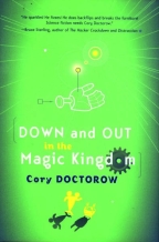 Beneath the shiny surface of even the glossiest, most vapid entertainment, there's a huge complex machine that chugs all day and all night just to eke a few laughs out of the audience. The most difficult aspect of any entertainment endeavor is to make what is in reality very complex look very simple. 'Down and Out in the Magic Kingdom' by Cory Doctorow conceals some very complicated thoughts beneath a glossy surface. It's Left Coast, Unix-based cyberpunk, with an Open Source origin. Everybody is logged in, all the time.