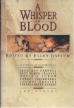 I have to admit it. Having just finished "Under the Fang", I wasn't necessarily drooling to read "A Whisper of Blood". I mean, how many vampire stories can a guy take? I'm only human. Really. But push came to shove, my editor asked for some more recent releases, and "A Whisper of Blood" was recent and had all the pedigree a horror anthology could handle. Ellen Datlow, the ringlet-haired editor of "Omni" Magazine in a JK Potter portrait on the back cover. A track record that made Dan Simmons' "Carrion Comfort" a multi-award nominee. New stories by Thomas Ligotti and Jonathan Carroll. I have to admit, it wasn't that hard to get around to reading this collection.